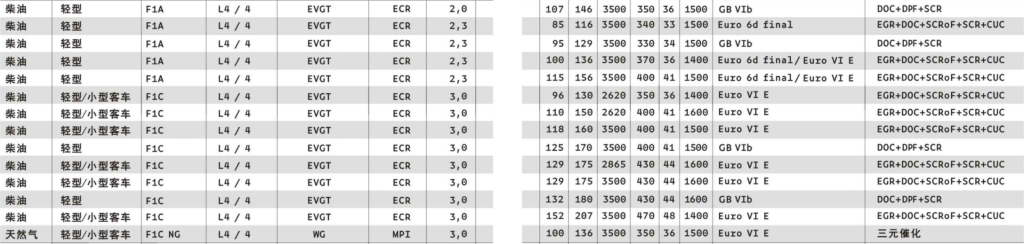 2021年時(shí),F(xiàn)1系列已獲得歐六E階段/Euro 6dFinal 認(rèn)證。通過(guò)采用外置冷卻廢棄再循環(huán)系統(tǒng)(EGR)、底置SCR及SCROF的組合,其在各類駕駛條件下均可達(dá)到所需的后處理效率。
